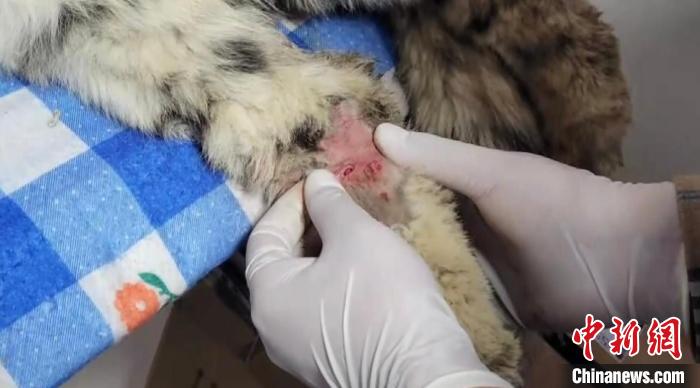 圖為雪豹右后腿受傷。 都蘭縣融媒體中心 供圖