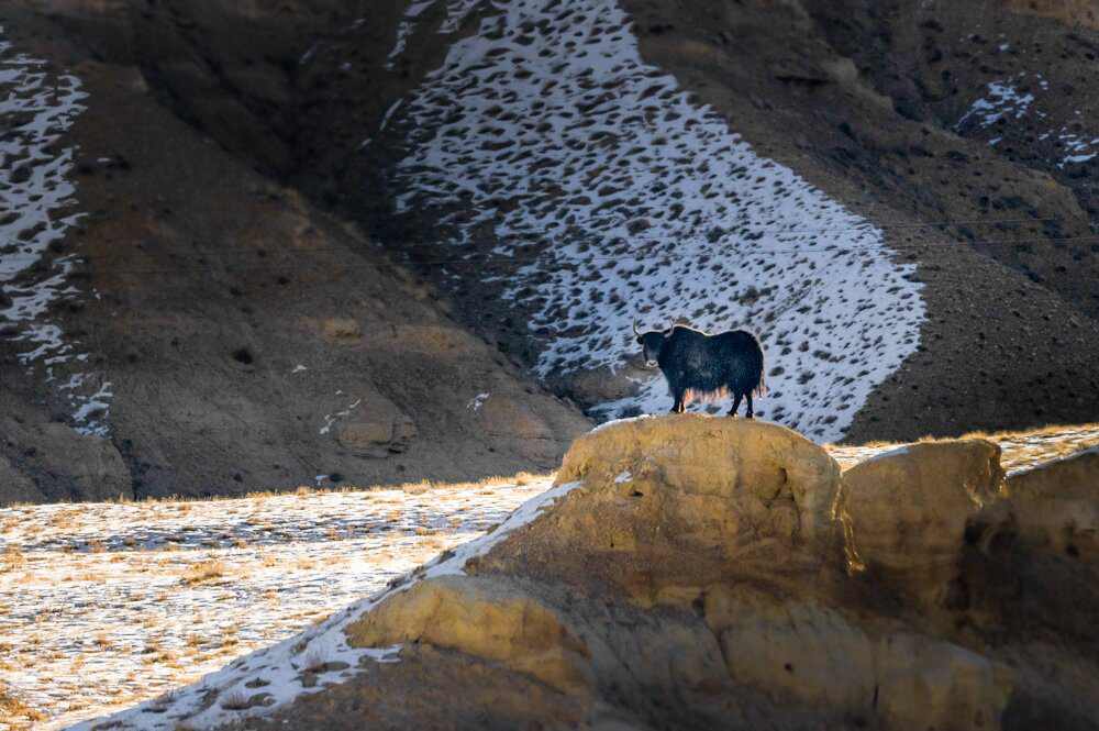 日土縣境內(nèi)國(guó)道216旁野牦牛。