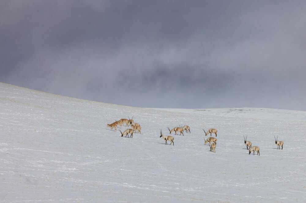 阿里日土縣境內(nèi)國(guó)道216旁遇見(jiàn)藏羚羊。