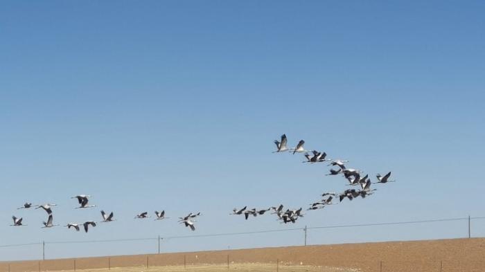 今年3月,青海果洛藏族自治州瑪多縣境內的三江源國家公園,蓑羽鶴在飛翔。新華社記者呂雪莉攝