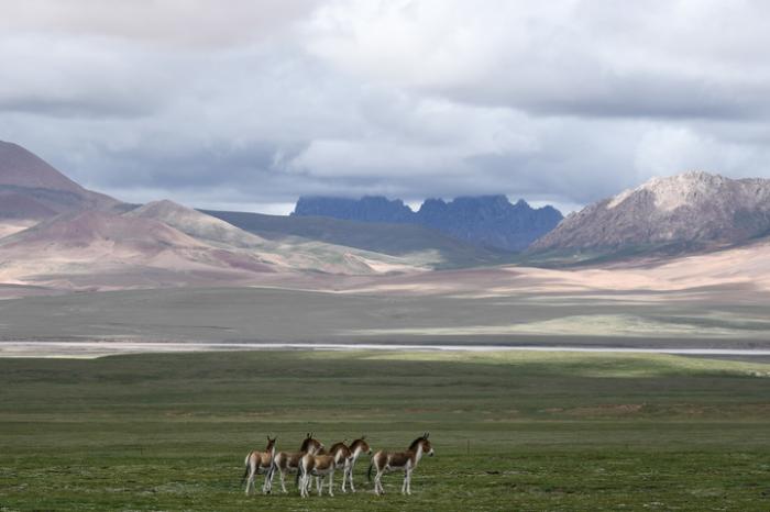 2021年7月,一群藏野驢出現(xiàn)在三江源國家公園。新華社記者張龍攝