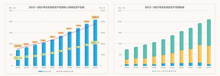 經(jīng)濟(jì)健康快速發(fā)展,地區(qū)生產(chǎn)總值由2012年的710.16億元增長(zhǎng)至2021年的2080.17億元。十年來,西藏地區(qū)生產(chǎn)總值增長(zhǎng)了152.6%,年均增長(zhǎng)9.7%。