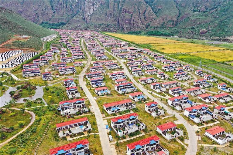 易地搬遷脫貧一批。2016年以來,累計(jì)投入198億元,建成964個(gè)易地扶貧搬遷安置點(diǎn),26.6萬(wàn)人搬遷入住。圖為西藏自治區(qū)加查縣共康村易地扶貧搬遷點(diǎn)。