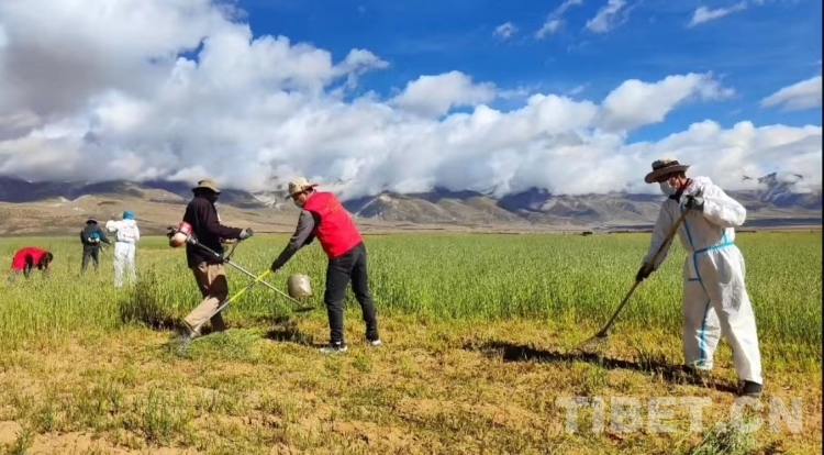 圖為國家牧草產(chǎn)業(yè)技術(shù)體系拉薩綜合試驗(yàn)站曲尼帕基地燕麥種子秋收搶收工作(海拔3760米)