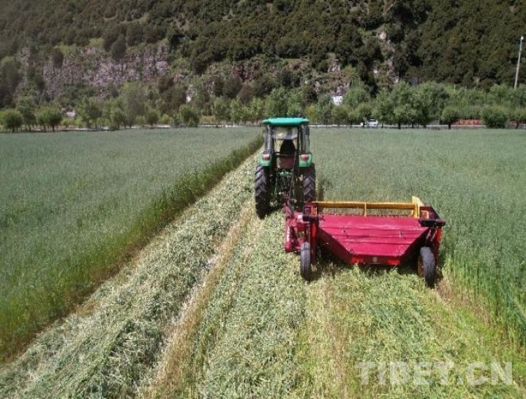 圖為國家牧草產(chǎn)業(yè)技術(shù)體系拉薩綜合試驗(yàn)站工布江達(dá)縣示范點(diǎn)秋收搶收(海拔3990米)