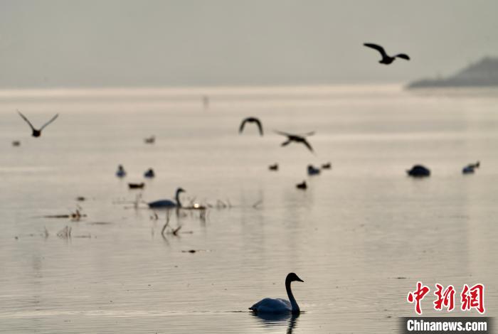 圖為天鵝和多種水鳥棲息在黃河流域?!±钣穹?攝
