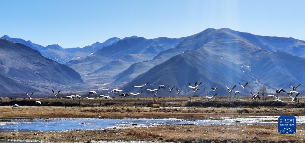 唐嘎鄉(xiāng)位于拉薩市達(dá)孜區(qū)東北部,這里每年冬季都會(huì)迎來(lái)黑頸鶴、斑頭雁、赤麻鴨等候鳥。這些珍稀鳥類時(shí)而在空中盤旋,時(shí)而棲息在水邊,營(yíng)造出一幅生機(jī)盎然的冬季畫卷。