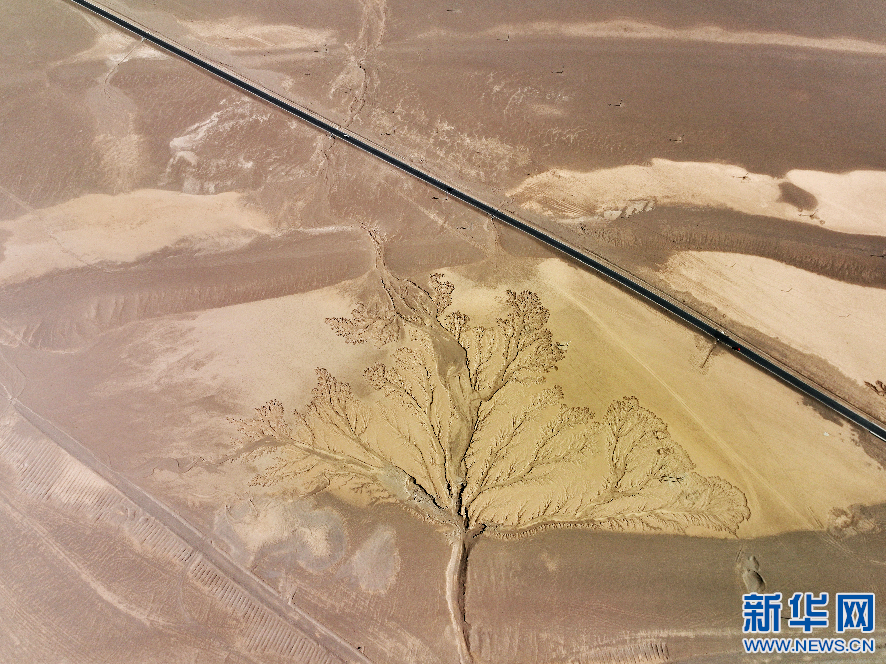 這是4月8日拍攝的位于阿里地區(qū)改則縣的“大地之樹”景觀(無(wú)人機(jī)照片)。 新華網(wǎng)發(fā) 曹枝清 攝