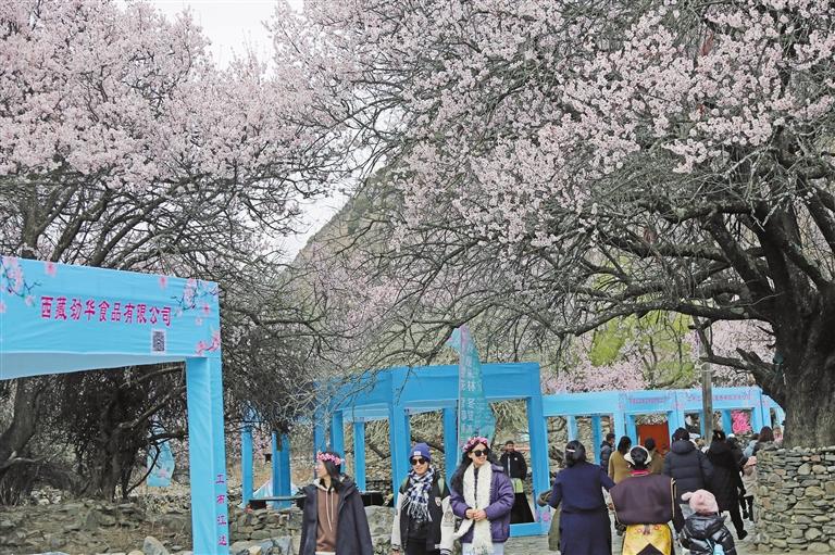 工布江達縣秀巴千年古堡吸引游客前來觀賞桃花。