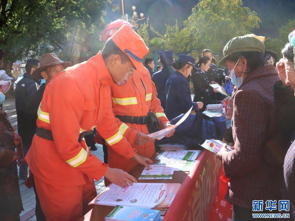 活動現(xiàn)場,林芝市森林消防支隊發(fā)放宣傳手冊。