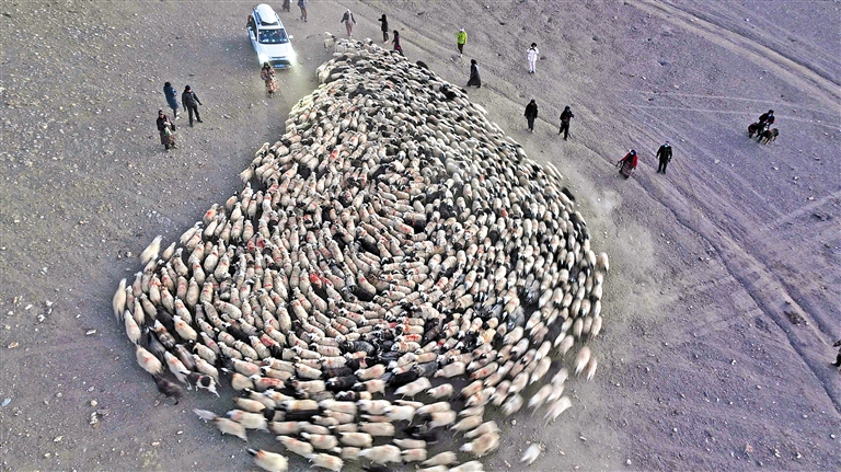 推瓦村牧民將羊群聚攏,準備轉(zhuǎn)場。記者 阿旺尼瑪 攝