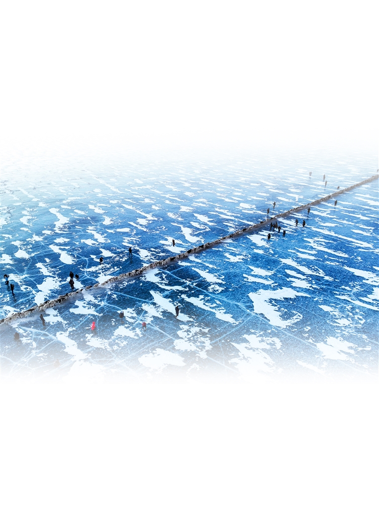 村里的老人此前已到冰面上反復查看,找到了一條距離最短、冰層夠厚的上島路線。此時,牧民背起裝滿爐灰的袋子,沿著路線仔細把爐灰撒在冰面上,鋪出一條“羊腸小道”。