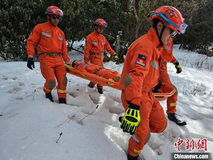 圖為拉練中開展冰雪災害失聯(lián)人員搜救訓練。西藏林芝市森林消防支隊供圖