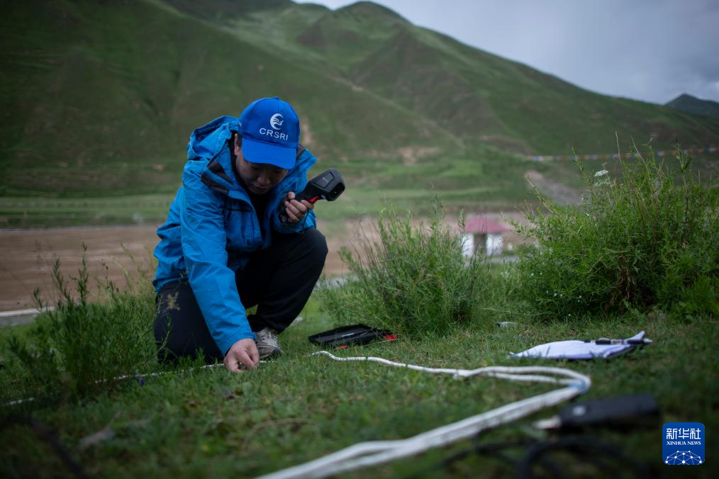 7月20日,在直門達水文站,長江科學院水土保持研究所任斐鵬在進行植被生態(tài)和水土流失調查。新華社記者 伍志尊 攝