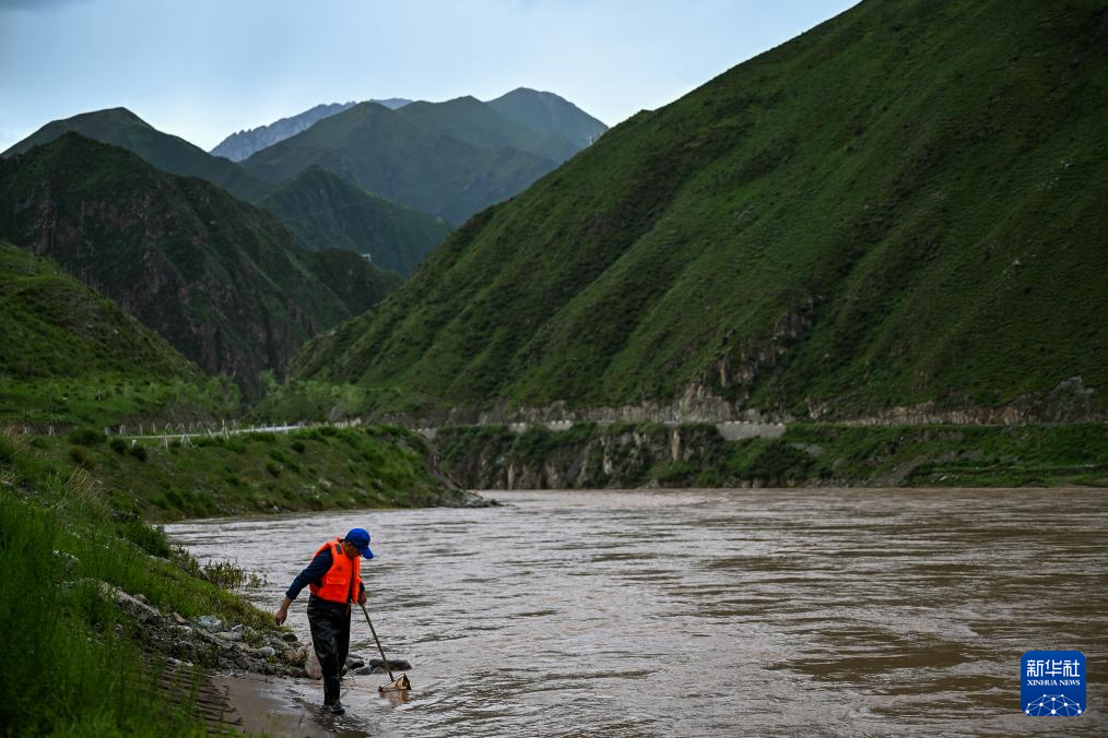 7月20日,在直門達水文站,長江科學院流域水環(huán)境研究所喬強龍開展現(xiàn)場魚類監(jiān)測。新華社記者 伍志尊 攝
