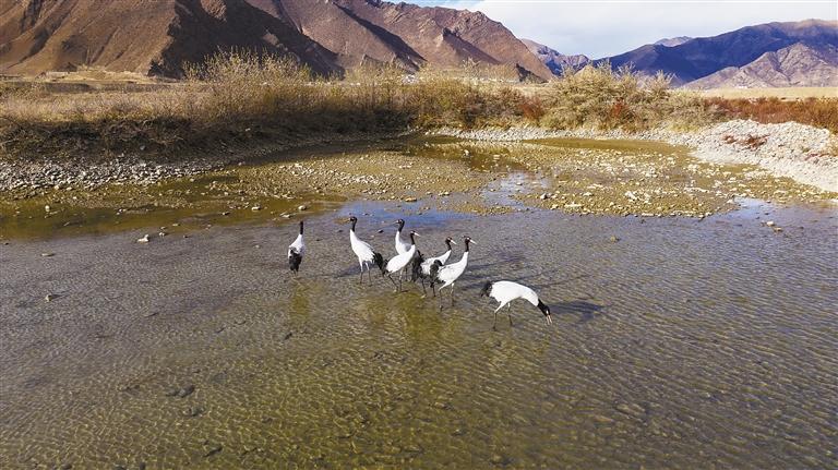 圖片均為黑頸鶴在墨竹工卡境內(nèi)棲息的場(chǎng)景。