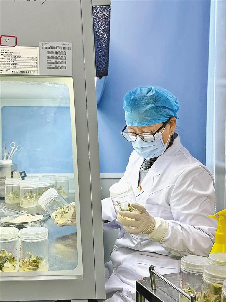 許多植物都有藥用價值,為了減少對野生植物的依賴,避免野外過度采集破壞生態(tài),2014年,尼珍團(tuán)隊成功繁育毛蓮蒿,并且將組培技術(shù)轉(zhuǎn)讓給相關(guān)企業(yè),還為企業(yè)培訓(xùn)了轉(zhuǎn)接人員,不僅保護(hù)了植物資源,也提高了企業(yè)增產(chǎn)能力。