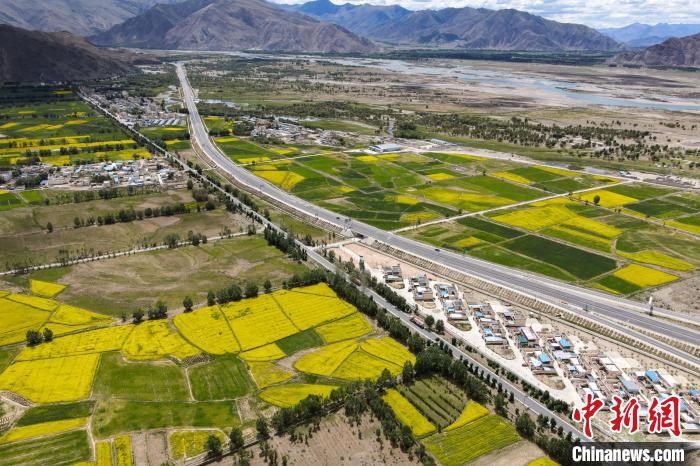 資料圖為2021年6月16日,航拍西藏拉薩河南岸種植的油菜和青稞。江飛波 攝