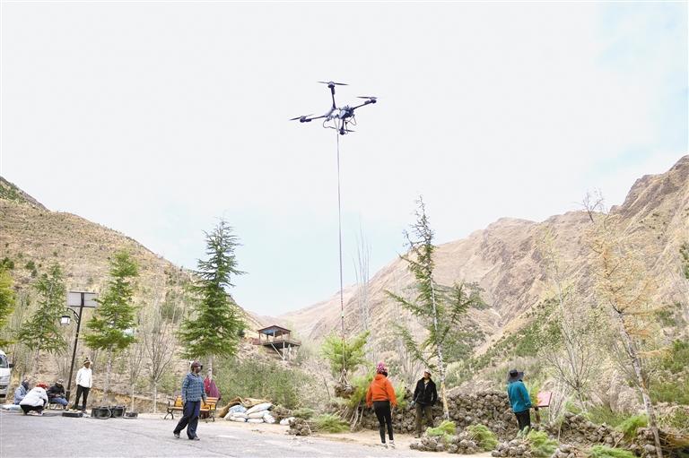 為了解決南北山綠化工程推進(jìn)過程中存在的樹苗搬運(yùn)耗時(shí)費(fèi)力、效率低問題,西藏因地制宜、積極創(chuàng)新,推行無(wú)人機(jī)運(yùn)輸苗木技術(shù),極大提升了綠化工作的效率。無(wú)人機(jī)的使用能夠快速將樹苗精準(zhǔn)投放到指定區(qū)域,以往需要數(shù)天才能完成的樹苗運(yùn)輸工作,現(xiàn)在僅需幾個(gè)小時(shí)就能完成,大大縮短了綠化作業(yè)的周期。