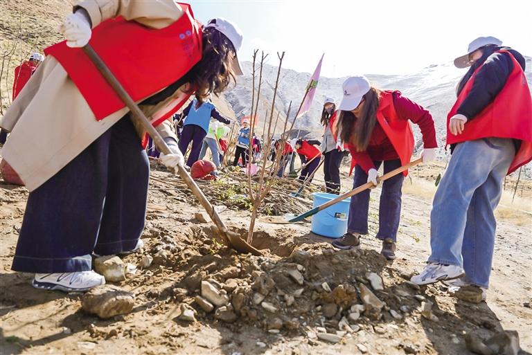 本次“遇‘建’南北山·‘?dāng)?shù)’植生態(tài)林——我在西藏有棵樹”大型公益植樹活動,旨在踐行綠水青山就是金山銀山理念,以實際行動深入落實西藏建設(shè)國家生態(tài)文明高地部署要求,錨定“五年增綠山川、十年綠滿拉薩”目標(biāo),進(jìn)一步激發(fā)社會大眾的愛林護(hù)林造林意識和綠色生態(tài)發(fā)展意識。近年來,中國建設(shè)銀行西藏自治區(qū)分行始終堅持以人民為中心的發(fā)展思想,堅持“三帶一融合”做公益,以綠色金融為筆,以生態(tài)建設(shè)為卷,在守護(hù)高原生態(tài)屏障的征程中篤行不怠。中國建設(shè)銀行西藏自治區(qū)分行黨委委員、副行長鄧存云表示:“中國建設(shè)銀行西藏自治區(qū)分行積極承擔(dān)國有大行社會責(zé)任,致力公益事業(yè)發(fā)展,始終將綠色金融理念融入生態(tài)文明發(fā)展血脈,堅定不移地支持生態(tài)建設(shè)事業(yè)。自2022年承接拉薩市白定東2-1號片區(qū)綠化工程任務(wù)以來,累計投入項目資金3000余萬元,累計種植各類苗木32萬余株(含補植),種植覆蓋率和成活率均達(dá)90%以上,有力帶動當(dāng)?shù)貏趧?wù)用工8000余人次,累計為南北山綠化工程發(fā)放專項貸款6.46億元,取得了較好的生態(tài)效益、經(jīng)濟(jì)效益和鄉(xiāng)村振興效益?!?/p>