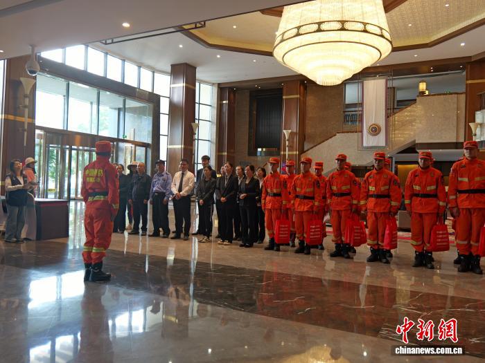 圖為消防隊(duì)員正在酒店宣傳防災(zāi)減災(zāi)知識。林芝市森林消防支隊(duì)供圖