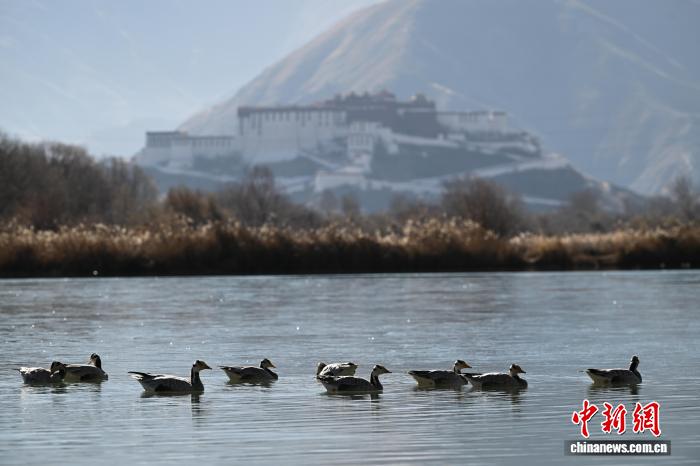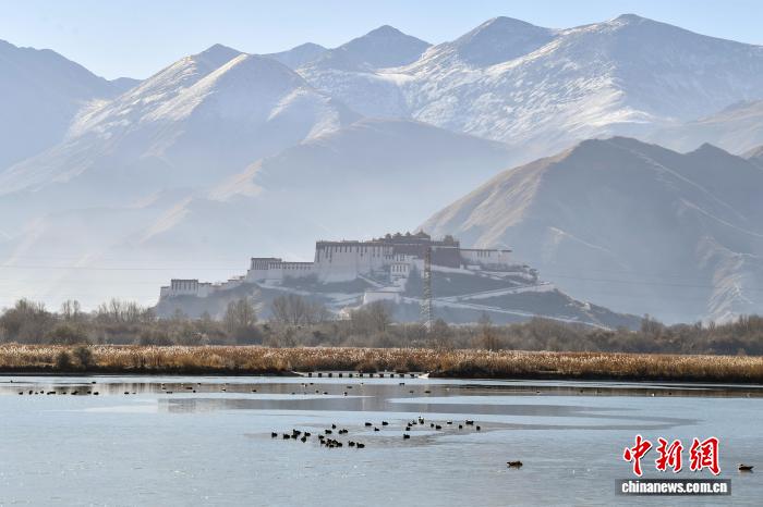2025年12月9日,世界海拔最高的城市內(nèi)陸天然濕地——拉薩拉魯濕地國家級自然保護區(qū)盡顯冬日盛景。這片總面積12.2平方公里的“拉薩之肺”,初冬時節(jié)蘆葦泛金,赤麻鴨、斑頭雁等候鳥在此嬉戲覓食。遠處布達拉宮巍然矗立,周邊雪山皚皚,自然生態(tài)與人文景觀交相輝映,構成一幅兼具壯闊與靈動的高原畫卷,彰顯著拉薩人與自然和諧共生的生態(tài)之美。圖為拉薩市民在拉魯濕地晨練。中新社記者 貢嘎來松 攝