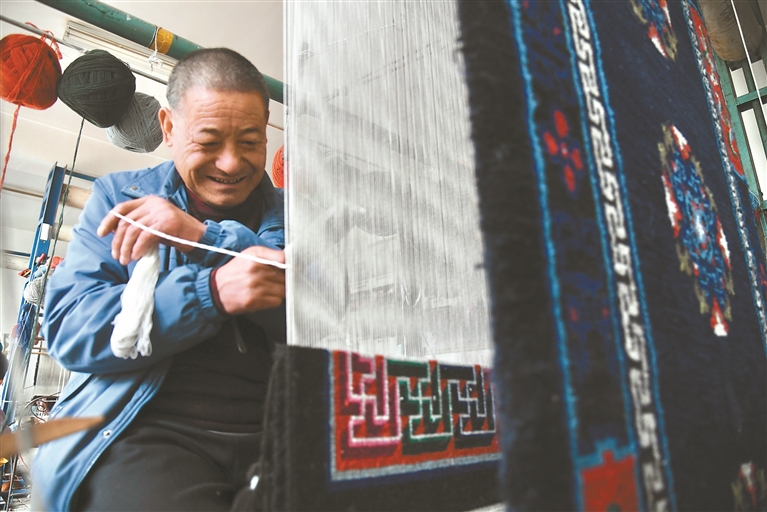 “這面藏毯織好后,就要送進(jìn)中國工藝美術(shù)館收藏了!”楊永良撫摸著手中正在織造的藏毯,眼含笑意,將這門家庭與村落世代相傳的手藝娓娓道來。