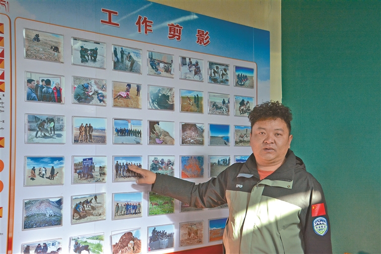 尼瑪縣羅布玉杰管護站負(fù)責(zé)人格桑倫珠在介紹野生動物保護工作開展情況。記者 汪純 攝