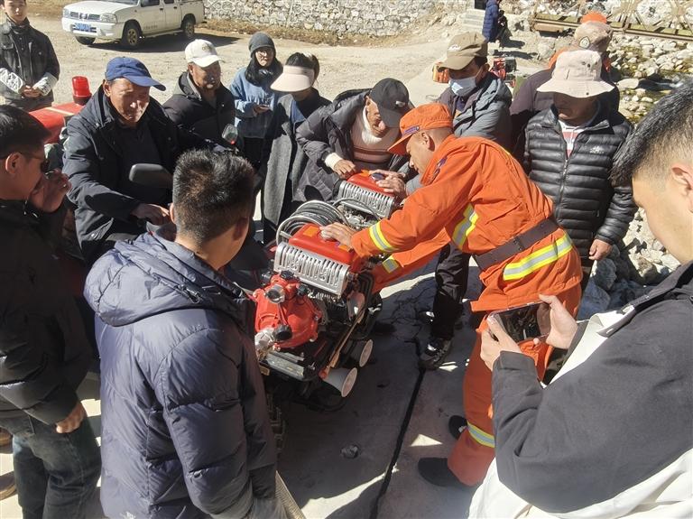 在山地水泵架設(shè)與撤收等核心實(shí)操環(huán)節(jié),消防救援人員結(jié)合當(dāng)?shù)厣降仄鸱?、坡度較大的地形特征,現(xiàn)場(chǎng)演示管帶鋪設(shè)技巧、水泵啟動(dòng)流程、壓力調(diào)節(jié)要點(diǎn),并針對(duì)參訓(xùn)人員提出的“水泵故障應(yīng)急處置”“復(fù)雜地形下管帶防纏繞技巧”“緊急避險(xiǎn)撤離路線選擇原則”等實(shí)際問(wèn)題逐一解答。參訓(xùn)人員全程專(zhuān)注投入,主動(dòng)參與實(shí)操演練,相互交流學(xué)習(xí)心得,現(xiàn)場(chǎng)形成“比學(xué)趕超”的濃厚氛圍,確保每一項(xiàng)技能要點(diǎn)都學(xué)深悟透、練熟用活。
