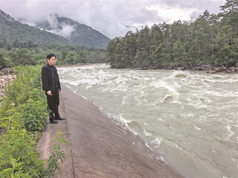 圖為林芝市墨脫縣格當(dāng)鄉(xiāng)的巡河隊(duì)員在巡查河流。記者 王敏 通訊員 郎玲 攝