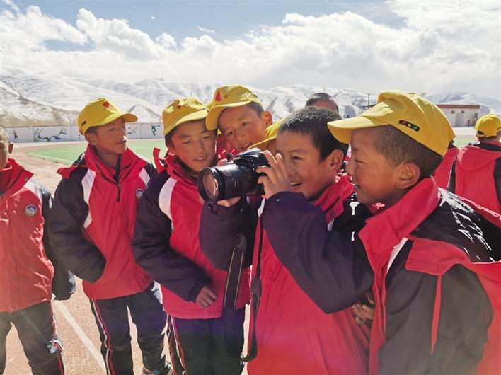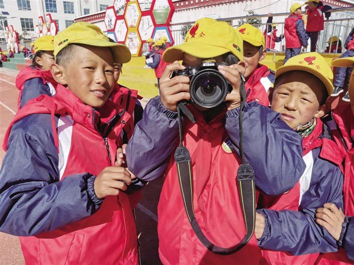 草原上的孩子“野”慣了,熱愛足球,旺杰群培老師便加入進來,給他們帶去了一節(jié)足球課。小小的足球,載著孩子們大大的夢想;他們喜歡音樂,仁增老師就帶著充滿詩情畫意的民謠歌曲,還有節(jié)奏感十足的舞蹈來到這里,跟孩子們熱情互動;要培養(yǎng)孩子們的國學(xué)情懷,陳明桃老師花費心思備課,設(shè)計方案,精彩的課程最終贏得了陣陣掌聲;美術(shù)能讓孩子們天馬行空的思維得到釋放,年輕的范思宇就帶著草原的驕傲——亞運圣火采集女神像來到課堂上,和孩子們一起描繪心中最美“女神”……大朋友用一節(jié)節(jié)精彩的課程帶著小朋友感知美好世界