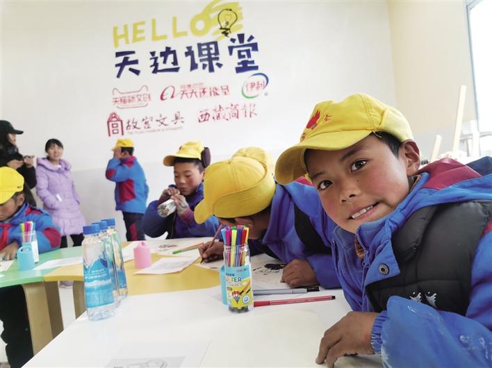 2019年8月,當(dāng)孩子們迎來新的一學(xué)期,天貓、人民日報和故宮聯(lián)合宣布,故宮文具上線天貓。為了給孩子們一份特別的禮物,天貓新文創(chuàng)、阿里巴巴天天正能量、伊利、故宮文具、西藏商報聯(lián)合發(fā)起“天邊課堂”公益項目,為西藏一所村小改造一間海拔最高的“天邊課堂”教室,為孩子們送上故宮文具,設(shè)計形式多樣的美育課程,助力鄉(xiāng)村孩子在開學(xué)伊始揚帆起航,開啟新學(xué)期新體驗。