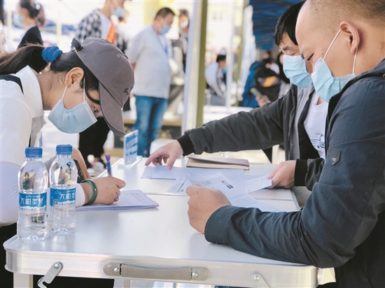 記者在招聘會現(xiàn)場看到,不少高校畢業(yè)生正與自己心儀的企業(yè)進行溝通,仔細(xì)詢問薪資待遇、培訓(xùn)提升等情況,雙方滿意后達成用工意向協(xié)議。