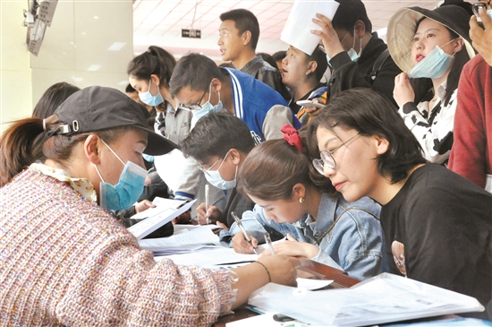 “今天來這兒招聘,就是想應(yīng)聘教師崗位。剛在一家民營教育機構(gòu)遞交了簡歷,希望能有好消息?!逼涿雷楷斦f。