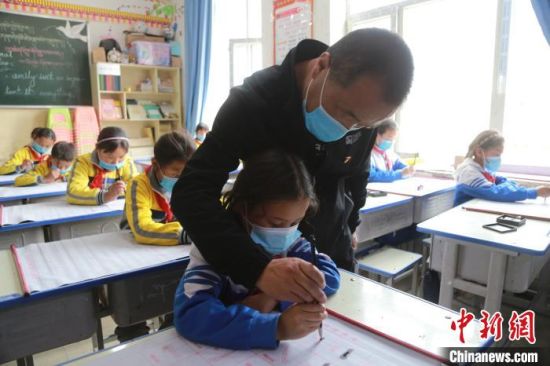 圖為鄉(xiāng)村學(xué)校少年宮的孩子們?cè)诶蠋煹闹笇?dǎo)下練習(xí)書法?!〔抛尡?攝