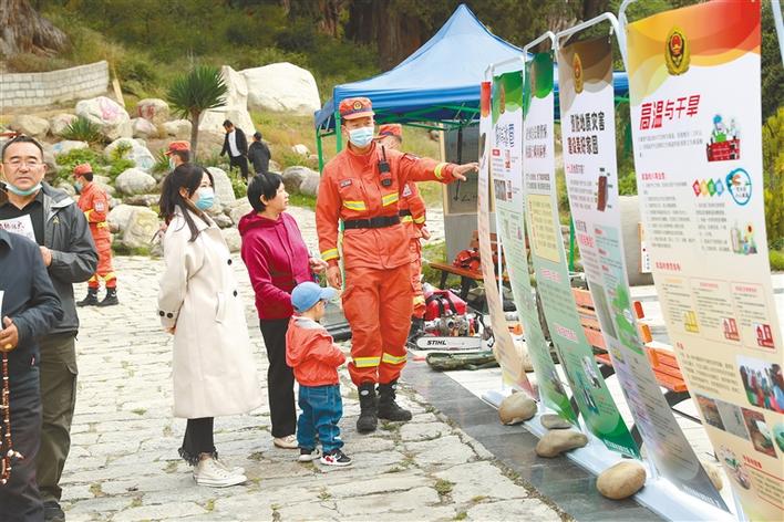 圖為指戰(zhàn)員向游客講解森林防火知識。西藏日報(bào)記者 張猛 攝