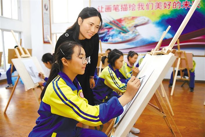 圖為昌都市卡若區(qū)第二初級中學的老師指導學生素描。丹增群培 攝