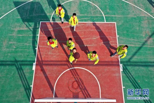 11月12日,學(xué)生在大課間打籃球(無人機(jī)照片)。 位于山東省青島市即墨區(qū)的青島藍(lán)谷高新區(qū)東皋埠小學(xué)是一所鄉(xiāng)村學(xué)校,近年來,學(xué)校開展以乒乓球、籃球、跳繩等運(yùn)動(dòng)為主的大課間活動(dòng),讓孩子們?cè)谙硎苓\(yùn)動(dòng)的同時(shí)愉悅身心,增強(qiáng)體質(zhì)。 新華社發(fā)(梁孝鵬攝)