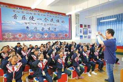 甘孜州巴塘縣正在上音樂(lè)課的孩子們。 劉磊攝