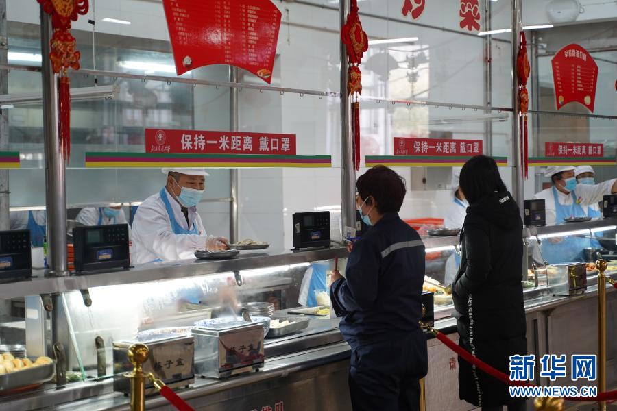 2月8日,北京交通大學(xué)學(xué)生四食堂工作人員為留校人員打飯。新華社記者 張浩波 攝