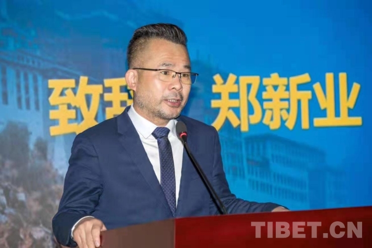 圖為西藏民族大學黨委書記歐珠致歡迎辭