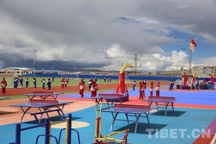 圖為西藏自治區(qū)那曲市色尼區(qū)杭嘉中學(xué)的學(xué)生們正在操場上進(jìn)行各種體育活動(dòng) 攝影:吳建穎