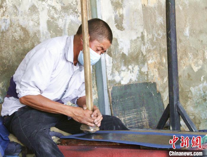 在拉薩市尼木縣,手藝人正在加工雪拉藏紙?!∪轿木?攝