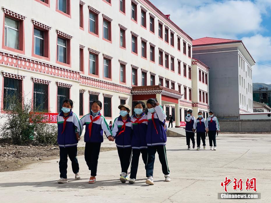 9月1日,青海省果洛藏族自治州瑪多縣地震災(zāi)后過渡安置一校區(qū)的同學(xué)們迎來了新學(xué)期。圖為學(xué)生們下課后走出教學(xué)樓。為確保青?,敹嗳h中小學(xué)(幼兒園)學(xué)生秋季正常開學(xué),該縣對災(zāi)區(qū)2933名學(xué)生、322名教職工分批次過渡安置到青海省果洛全州各校以及青海省三江源民族中學(xué)就學(xué)。 中新社記者 孫睿 攝