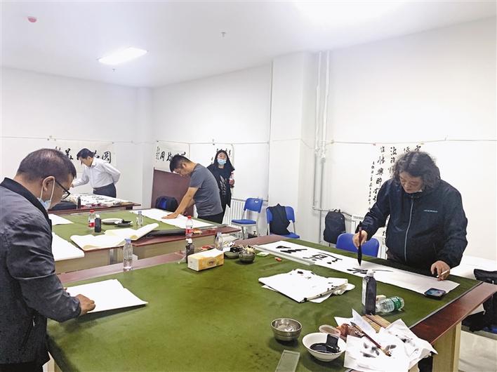 圖為北京和拉薩兩地書法家在拉薩師范高等??茖W(xué)校開展書法筆會交流。 記者 裴聰 攝