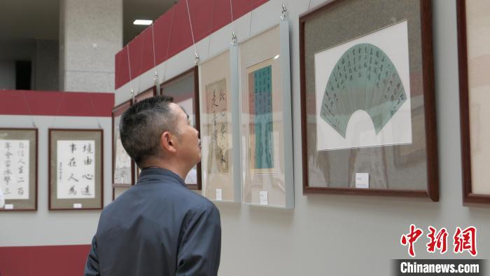 圖為市民在展廳內(nèi)觀看書法作品。 謝牧 攝