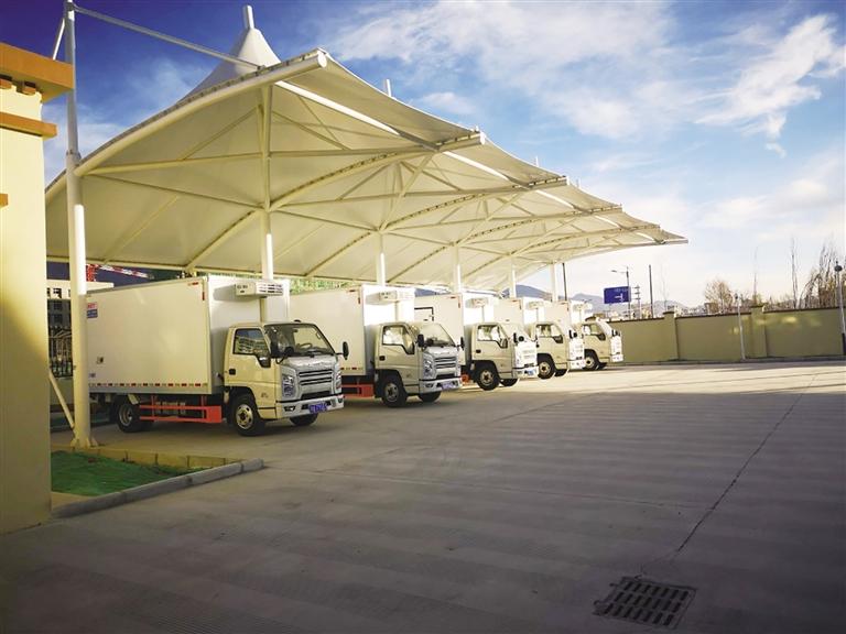 27日上午9時許,記者來到位于318國道南側(cè)的拉薩市城關區(qū)凈土中央廚房,看見道路兩邊停放著一排排送餐車輛。“目前,我們共有20輛保溫加溫送餐車輛,而且每輛送餐車有兩把鑰匙,一把在工作人員手中,另一把在學校工作人員手中。當午餐送到學校后,兩把鑰匙同時使用才能將車輛打開?!崩_市城關區(qū)凈土中央廚房運營管理有限公司總經(jīng)理葉濤介紹,這樣做,主要是為了保證運送途中的食品安全。