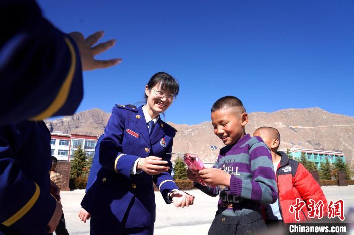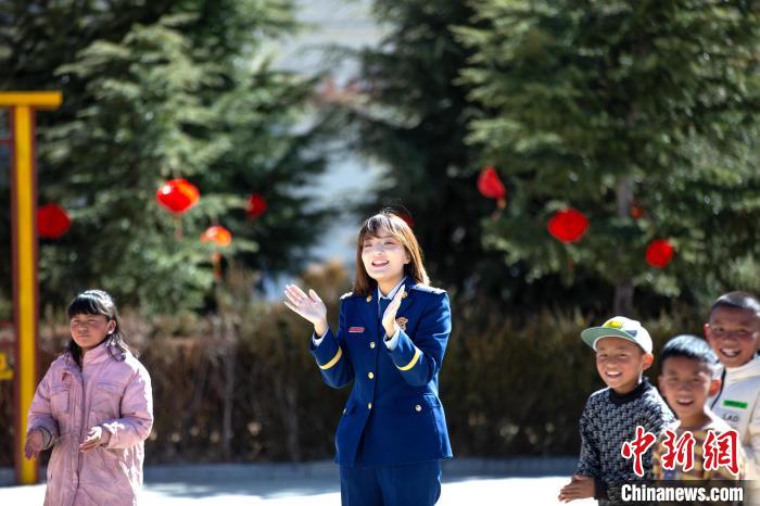 在活動(dòng)中,志愿者們首先與孩子們進(jìn)行了自我介紹,詳細(xì)了解孩子們的生活、學(xué)習(xí)情況。同時(shí),帶著孩子們開展跳繩、丟沙包、短跑等互動(dòng)活動(dòng)。隨后,藏族歌手、總隊(duì)教育宣傳處助理員索朗德吉為孩子們演唱歌曲,在動(dòng)聽的旋律中不時(shí)傳來孩子們的歡聲笑語,其樂融融的氛圍,更是感染著在場的每一個(gè)人。