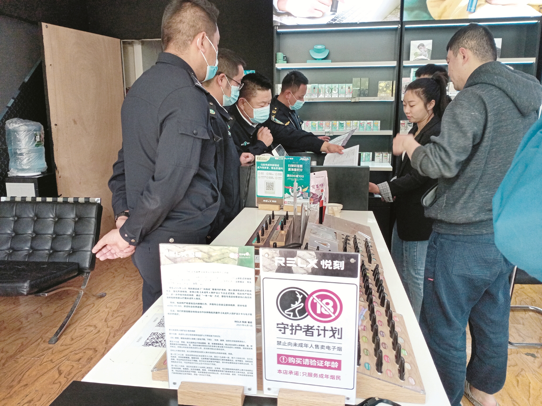 4月25日上午,市公安局和市煙草專賣局等四部門工作人員在柳梧新區(qū)聯(lián)合開(kāi)展了電子煙銷售網(wǎng)點(diǎn)檢查。每到一個(gè)電子煙銷售網(wǎng)點(diǎn),執(zhí)法人員會(huì)詳細(xì)查看銷售網(wǎng)點(diǎn)是否具有相關(guān)經(jīng)營(yíng)資質(zhì)、是否設(shè)立不得向未成年人售賣電子煙警示標(biāo)志以及身份證件核驗(yàn)等規(guī)定落實(shí)情況,并向電子煙經(jīng)營(yíng)者進(jìn)行相關(guān)法律法規(guī)宣傳,告知經(jīng)營(yíng)者嚴(yán)禁向未成年人銷售電子煙。