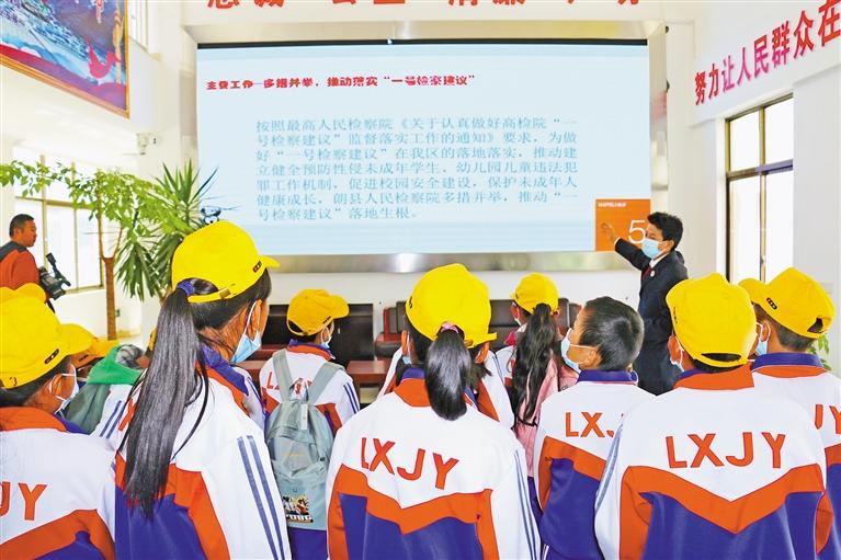 自2016年法治進(jìn)校園活動(dòng)開展以來,索朗旺久以高度的擔(dān)當(dāng)意識(shí),積極克服公訴、未檢人手不足的困難局面,先后擔(dān)任朗鎮(zhèn)小學(xué)法治副校長、朗縣中學(xué)法治輔導(dǎo)檢察官,及時(shí)制訂《開展“法治進(jìn)校園”全縣巡講活動(dòng)實(shí)施方案》,定期深入全縣8所中小學(xué)及幼兒園開展法治宣講活動(dòng)。
